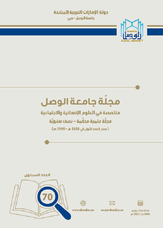 فضلا... اضغط على صورة العدد أو رقمه للحصول عليه مجلة جامعة الوصل، العدد 70مجلة علمية محكمة نصف سنويةمتخصصة في العلوم الإنسانية والاجتماعيةيونيو 2025 مجلة جامعة الوصل، العدد 69مجلة علمية محكمة نصف سنويةمتخصصة في العلوم الإنسانية والاجتماعيةديسمبر 2024 مجلة جامعة الوصل، العدد 68مجلة علمية محكمة نصف سنويةمتخصصة في العلوم الإنسانية والاجتماعيةيونيه 2024 مجلة جامعة الوصل، العدد 67مجلة علمية محكمة نصف سنويةمتخصصة في العلوم الإنسانية والاجتماعيةديسمبر 2023 مجلة جامعة الوصل، العدد 66مجلة علمية محكمة نصف سنويةمتخصصة في العلوم الإنسانية والاجتماعيةيونيه 2023 مجلة جامعة الوصل، العدد 65مجلة علمية محكمة نصف سنويةمتخصصة في العلوم الإنسانية والاجتماعيةديسمبر 2022 مجلة جامعة الوصل، العدد 64مجلة علمية محكمة نصف سنويةمتخصصة في العلوم الإنسانية والاجتماعيةيونيه 2022 مجلة جامعة الوصل، العدد 63مجلة علمية محكمة نصف سنويةمتخصصة في العلوم الإنسانية والاجتماعيةديسمبر 2021 مجلة جامعة الوصل، العدد 62مجلة علمية محكمة نصف سنويةمتخصصة في العلوم الإنسانية والاجتماعيةيونيه 2021 مجلة جامعة الوصل، العدد 61مجلة علمية محكمة نصف سنويةمتخصصة في العلوم الإنسانية والاجتماعيةمايو 2021 مجلة جامعة الوصل، العدد 60مجلة علمية محكمة نصف سنويةمتخصصة في العلوم الإنسانية والاجتماعية ديسمبر 2020 مجلة جامعة الوصل، العدد 59مجلة علمية محكمة نصف سنويةمتخصصة في العلوم الإنسانية والاجتماعية يونيه 2020 مجلة جامعة الوصل، العدد 58مجلة علمية محكمة نصف سنويةمتخصصة في العلوم الإنسانية والاجتماعية ديسمبر 2019