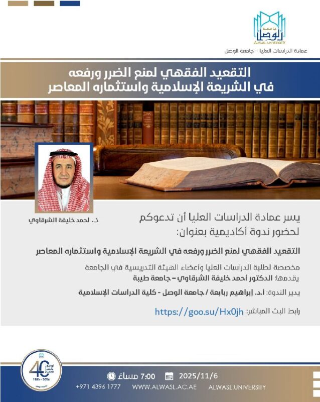 • ندوة أكاديمية – التقعيد الفقهي لمنع الضرر ورفعة في الشريعة الإسلامية واستثماره المعاصر